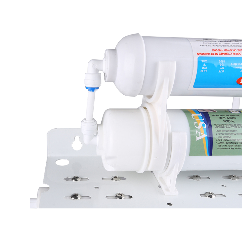 Dopo aver attraversato la membrana RO, l'acqua viene sottoposta a post-filtrazione, solitamente attraverso un filtro a carboni attivi. Questa fase finale aiuta a rimuovere eventuali impurità residue e migliora il gusto e l'odore dell'acqua. Il post-filtro rimuove in genere eventuali residui di cloro, composti organici volatili (COV) e altri odori, garantendo che l'acqua abbia un sapore fresco e pulito.
